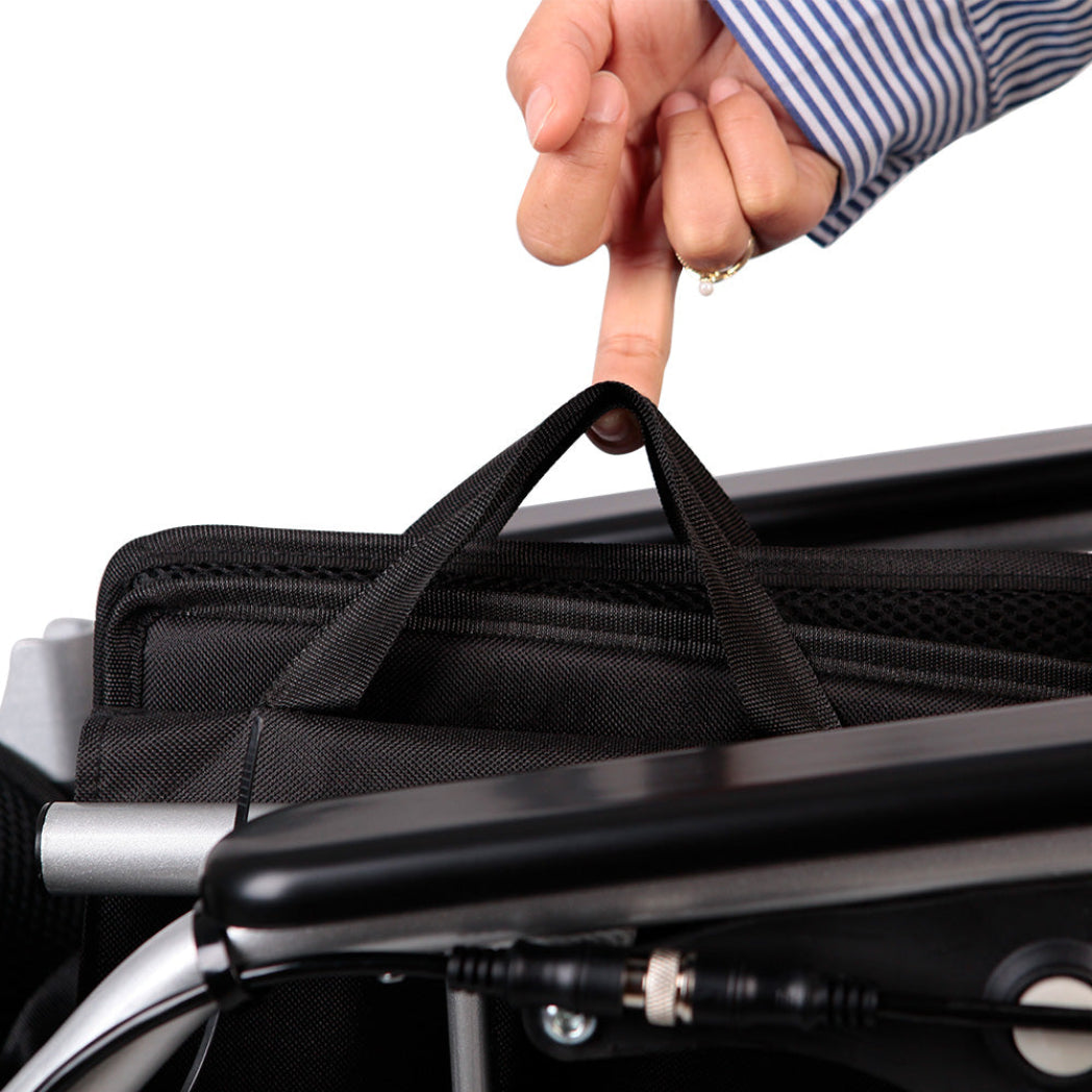 The chair is controlled with an easy-to-use joystick that can be placed on either the left or right hand side depending on the user’s preference. Alternatively, the controller can be mounted onto the handlebar to allow for carer or attendant control – an additional “carer-control bracket” will need to be purchased to make this possible.